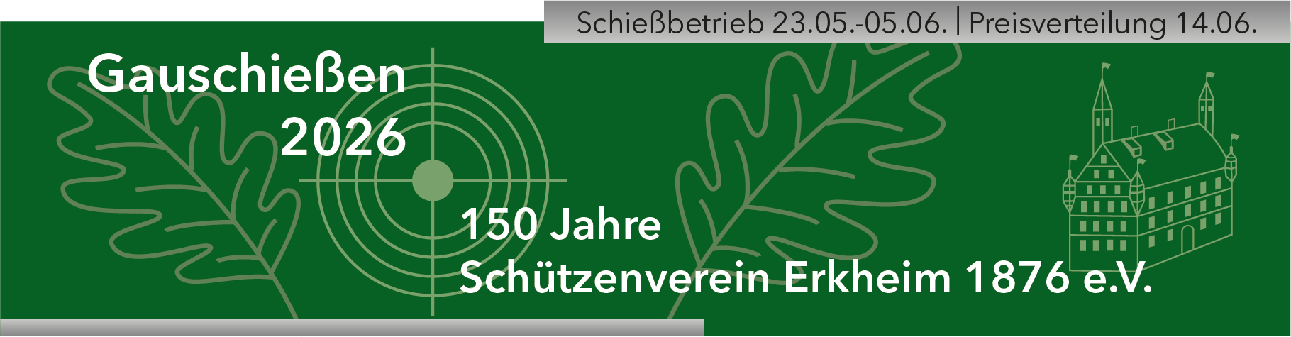 Das Gauschießen 2026 wird durch den Schützenverein Erkheim 1876 e.V. während der Pfingstferien von Samstag, den 23.05.2026, bis Freitag, den 05.06.2026, in der Turnhalle der Grund- und Mittelschule in Erkheim durchgeführt.